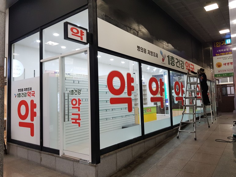 큼지막하게 약국표시 하는 작업입니다. 간판도 달고 시트작업도 하고 추가로 외관조명도 보강하고 해서 마무리를 짓는겁니다. 막상 설명이랍시고 할만큼의 디테일이 뭐가 특이할게 나올수가 없는 공사규모라서 그냥 마감이 깔끔하기만 하면 됩니다.