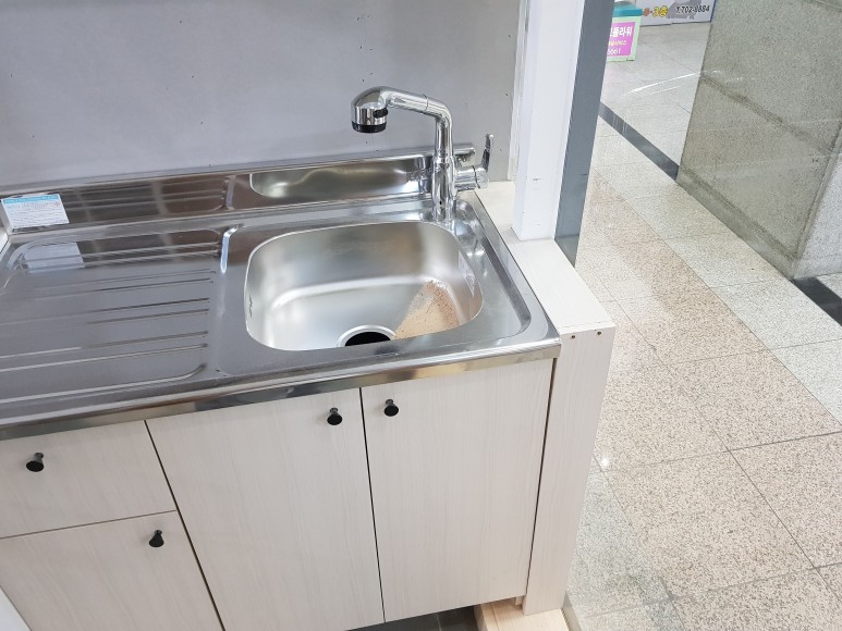싱크대는 반드시 있어야 합니다. 시설 규격에 포함되어 있어요. 1200짜리 폭의 싱크대가 있으면 적당합니다.