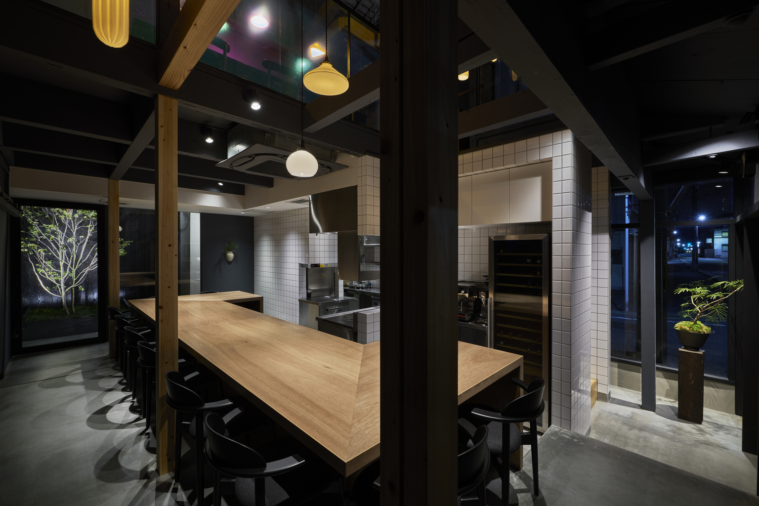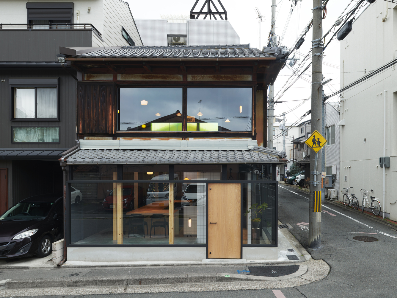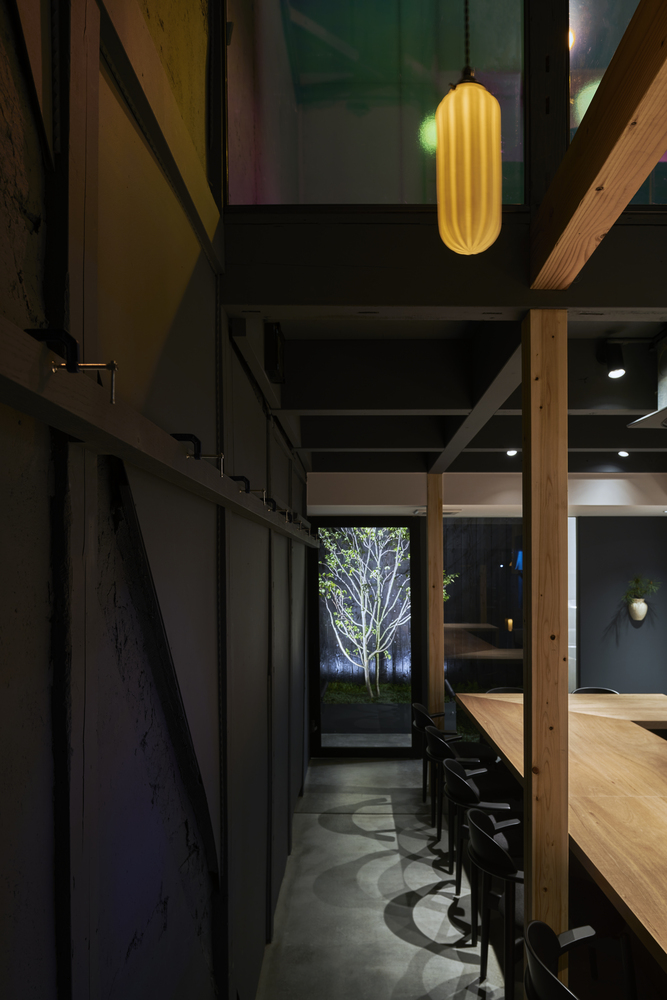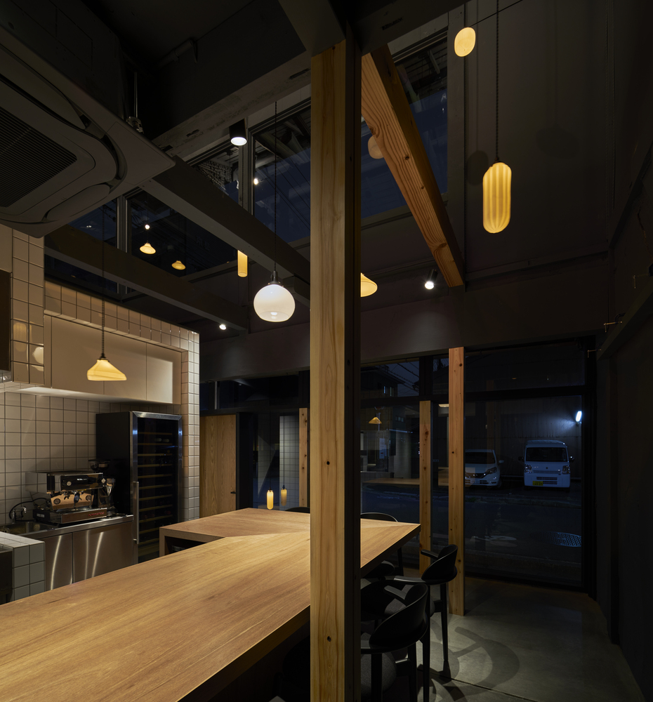 수석디자이너인 Naoya Matsumoto는 "친숙한 공간에서 주는 아련한 기억"들을 주제로 삼았다고 합니다. 특히 건축을 의뢰한 건축주의 추억속에 있는 할머니가 운영하던 작은 레스토랑과 동네 사람들에 대한 기억들을 투영하고자 했다고 합니다. 오래된 노포(老鋪)를 현대적으로 리뉴얼 하는데 주안점을 두었다고 하는데요 그래서 전면 파사드에 유리를 과감하게 배치한 것 같습니다.