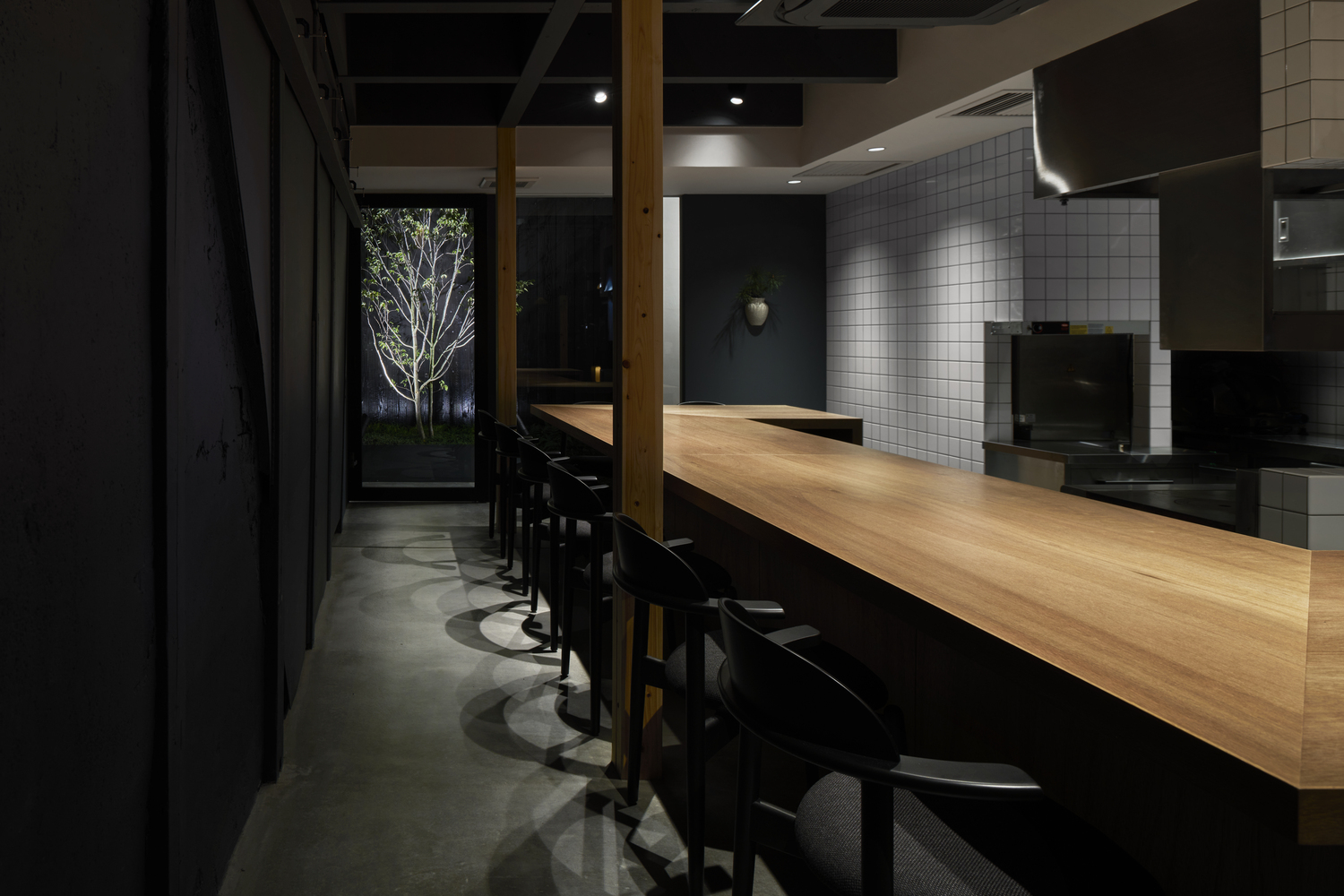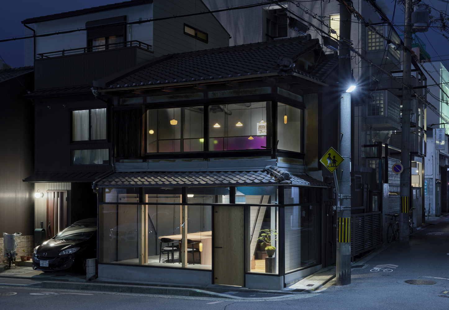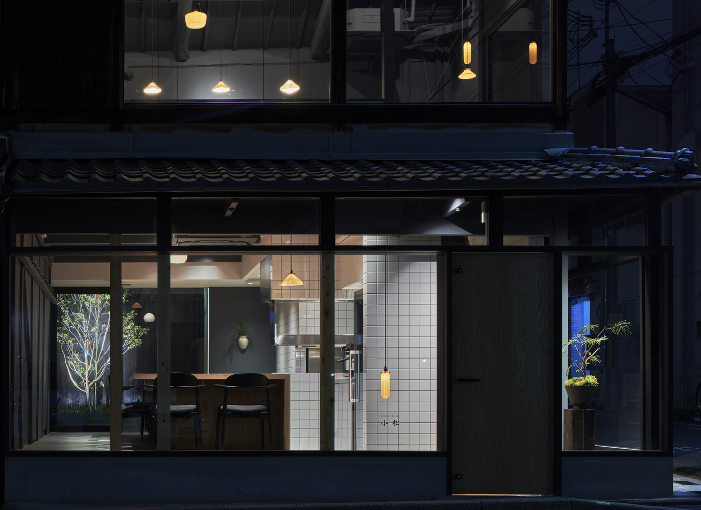 수석디자이너인 Naoya Matsumoto는 "친숙한 공간에서 주는 아련한 기억"들을 주제로 삼았다고 합니다. 특히 건축을 의뢰한 건축주의 추억속에 있는 할머니가 운영하던 작은 레스토랑과 동네 사람들에 대한 기억들을 투영하고자 했다고 합니다. 오래된 노포(老鋪)를 현대적으로 리뉴얼 하는데 주안점을 두었다고 하는데요 그래서 전면 파사드에 유리를 과감하게 배치한 것 같습니다.