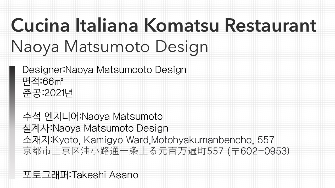 Cucina Italiana Komatsu Restaurant / Naoya Matsumoto Design / 2021 / 66㎡