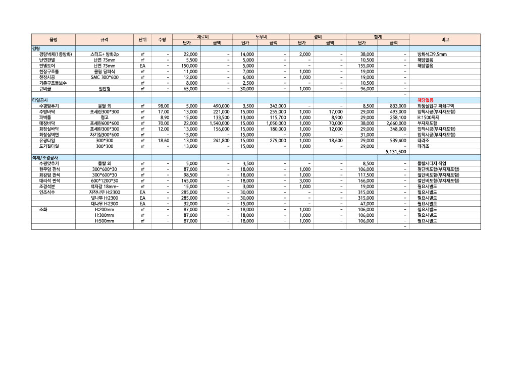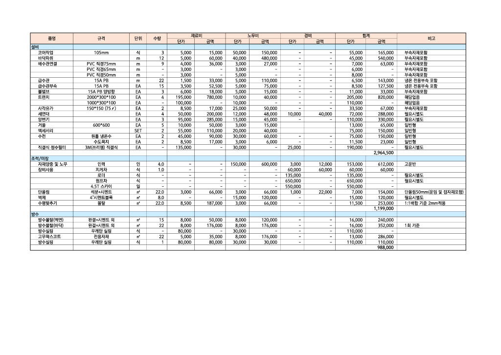 거의 대부분 이러한 업체들은 대표자의 개인적인 경험에 의존한 공사진행체계를 고집하거나(두서 없고 주먹구구식으로 공사진행) 표준적산표를 작성해본 경험이 없이- 쉽게 말하면 근본없이 일을 배운 경우가 대다수이고, 단순히 귀찮아서 약식으로 견적서를 제출하는 약간의 경우가 있습니다.