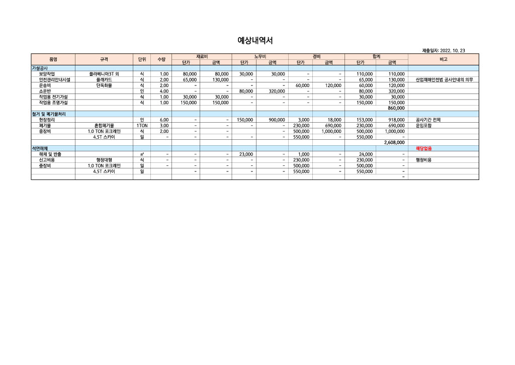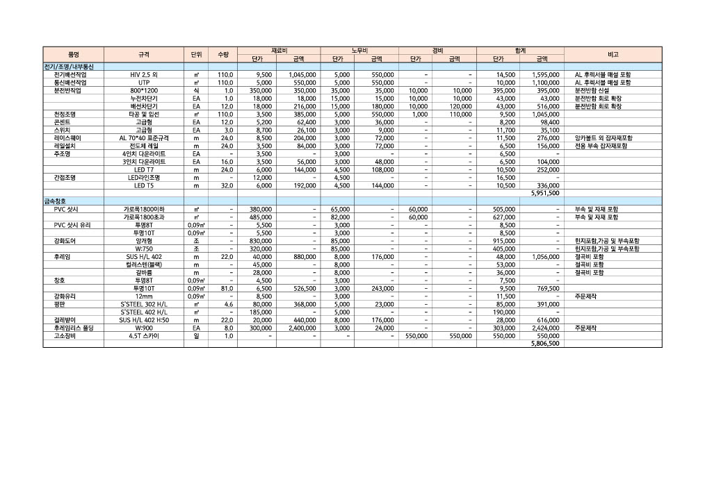 견적서가 비싼지 싼지 판단하는것은 여러가지를 검토해야 합니다.